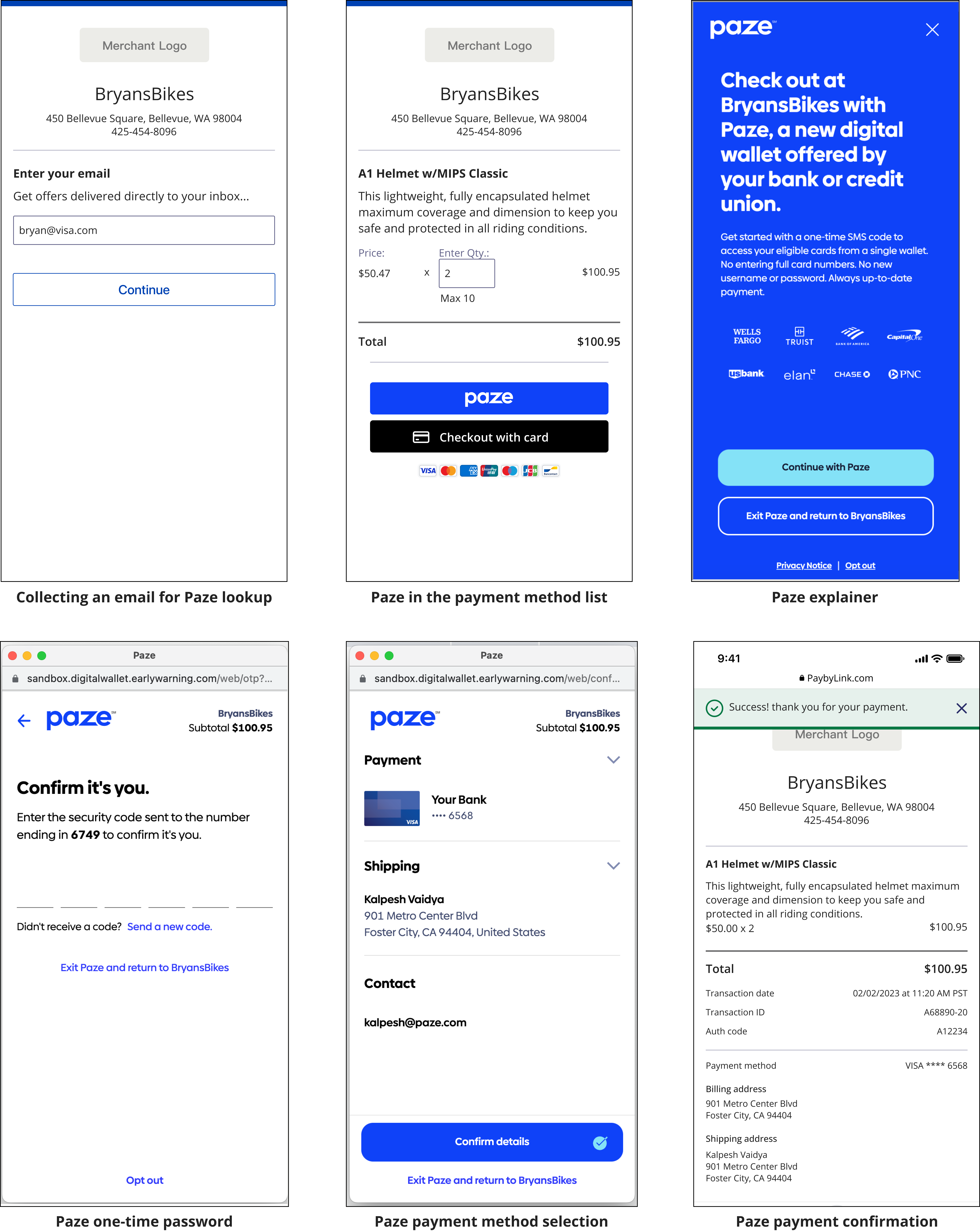 shows a recognized user payment flow where the cardholder's information is shown