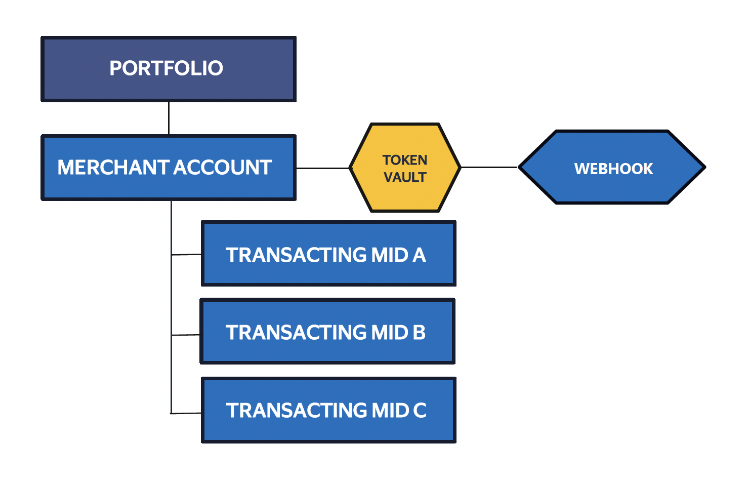 - This is a specific merchant account and represents a resold merchant under your portfolio. This is the level at whichTMSoperates and where theTMStoken vault is configured for token storage. This merchant account MID is registered with the business information of the end merchant that is resold by you.